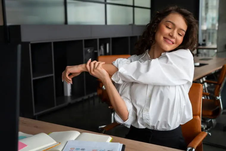 Uzun süre oturmak kaslarda gerginliğe neden olabilir. Ofiste 5 dakikalık esneme, kan akışını destekleyerek kas yorgunluğunu azaltabilir.