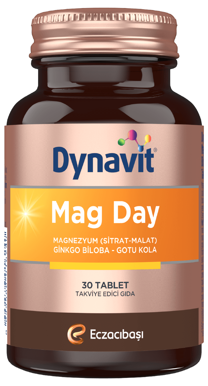 Dynavit® Mag Day Magnezyum Malat, Magnezyum Sitrat, Gotu Kola, Ginkgo Biloba, B6 Vitamini İçeren Tablet Takviye Edici Gıda