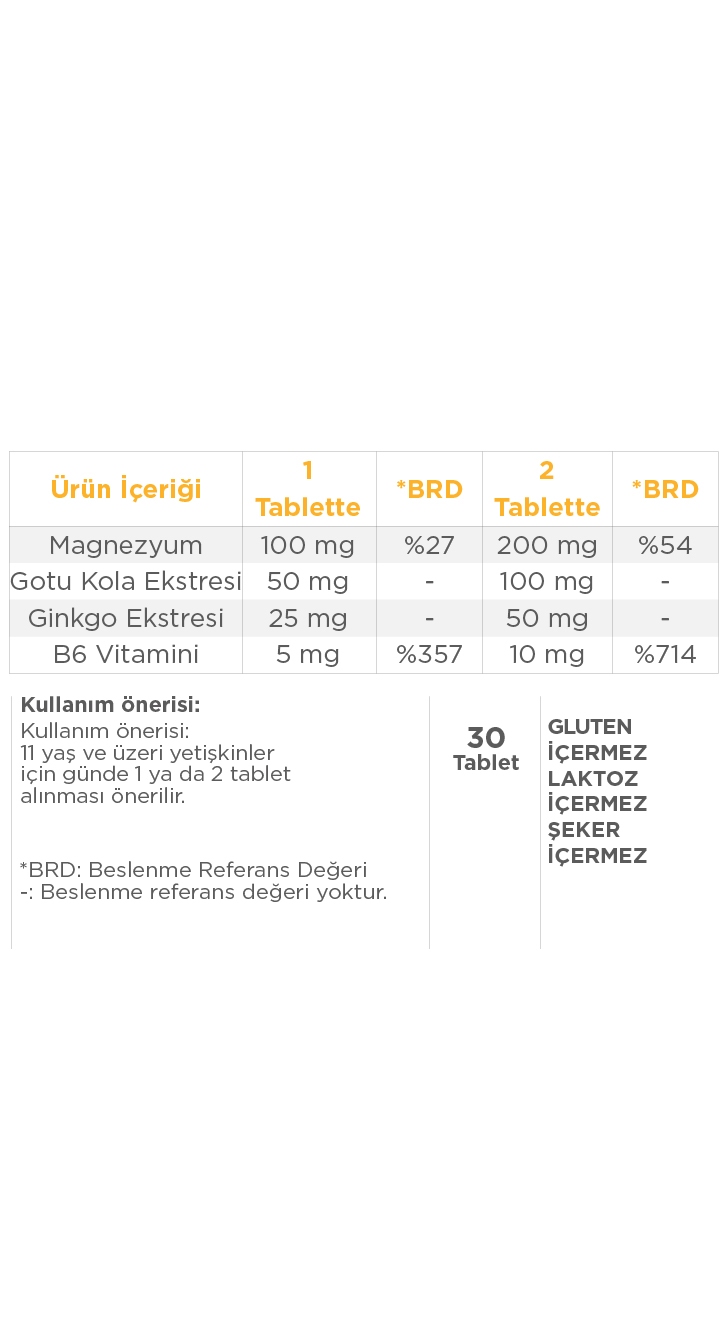 Toplam 100 Magnezyum içerisinde; Magnezyum Malattan elde edilen 70 mg , Magnezyum Sitrattan elde edilen 30 mg magnezyum  yer almaktadır.